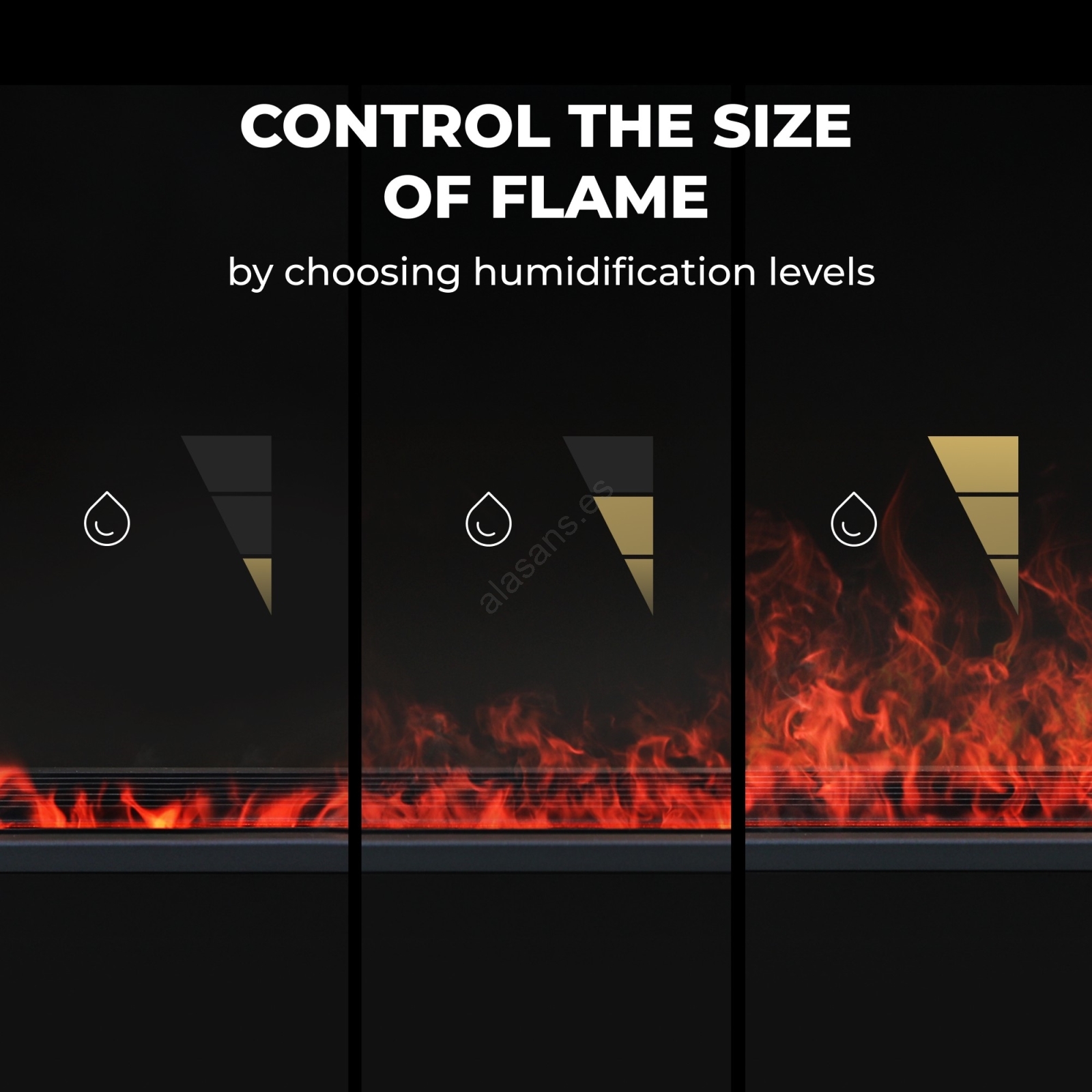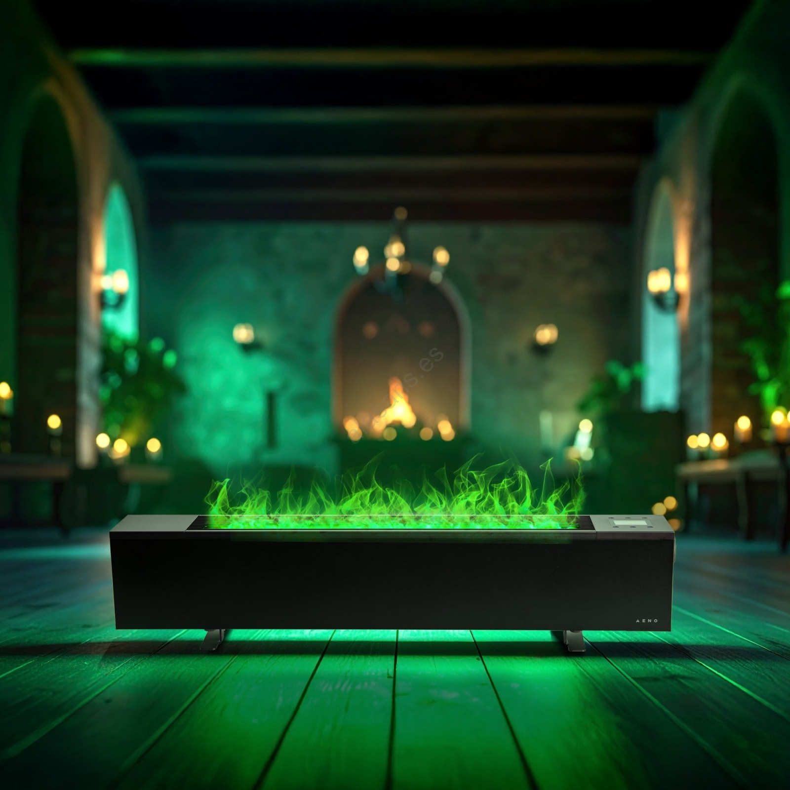 • Cuenta con un efecto decorativo „llama“ gracias a la iluminación LED y a la vaporización, que crea una atmósfera similar al fuego real, pero sin llama ni humo.