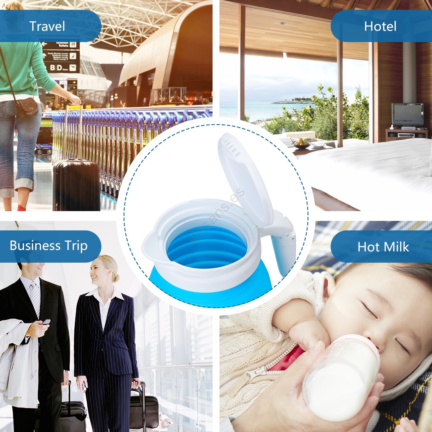 • Tetera de viaje plegable y portátil.