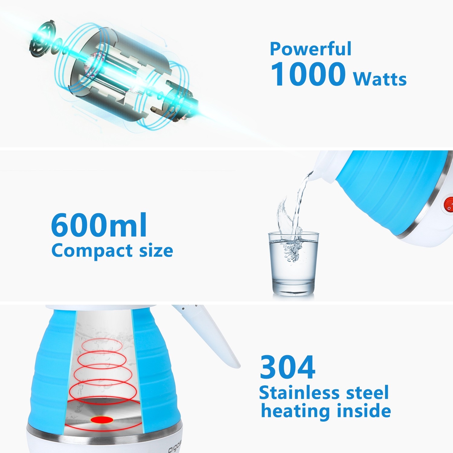 Aigostar - Hervidor de viaje 600ml 1000W/230V