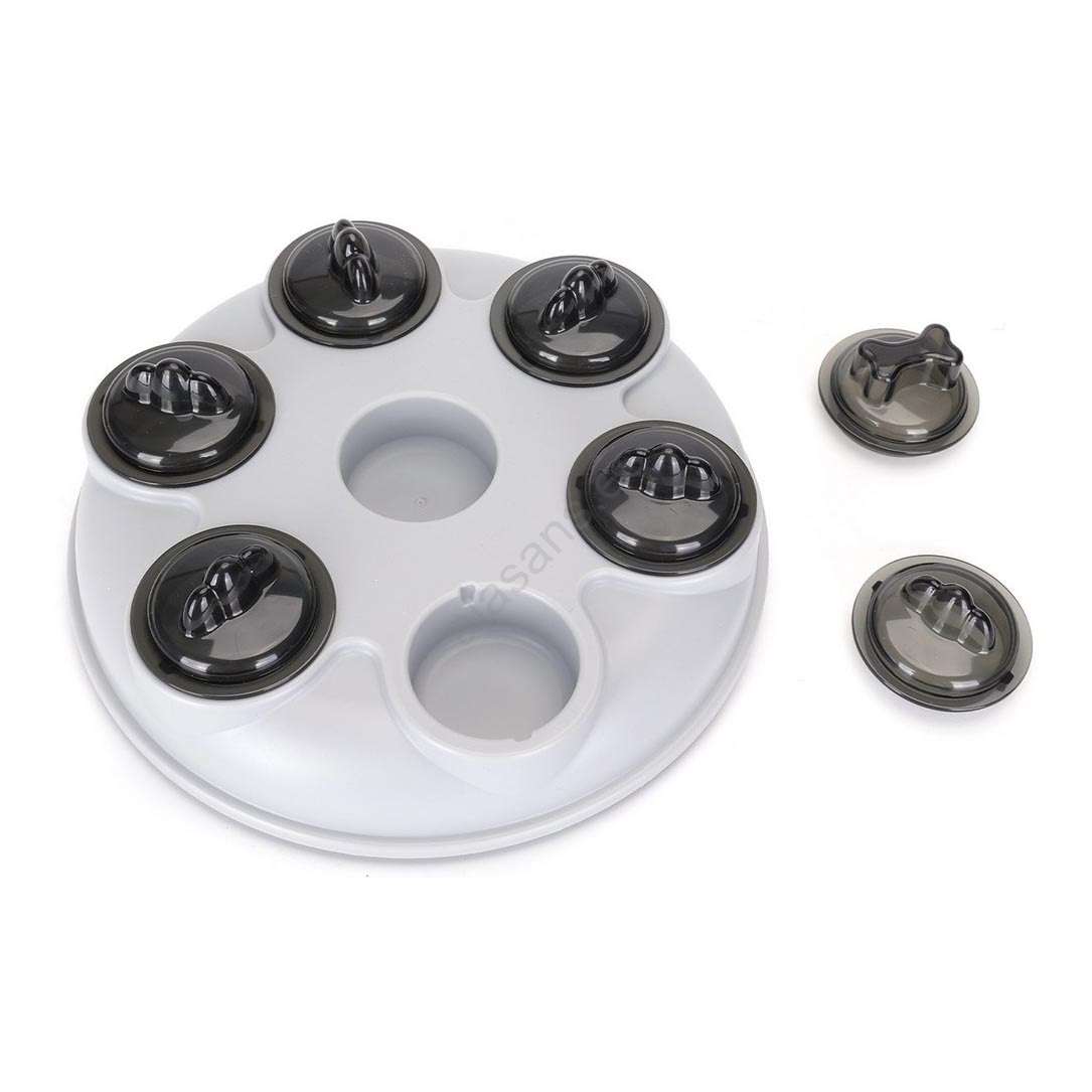 • El juguete cuenta con una tapa elevable y giratoria donde puedes colocar golosinas o premios para tu perro.