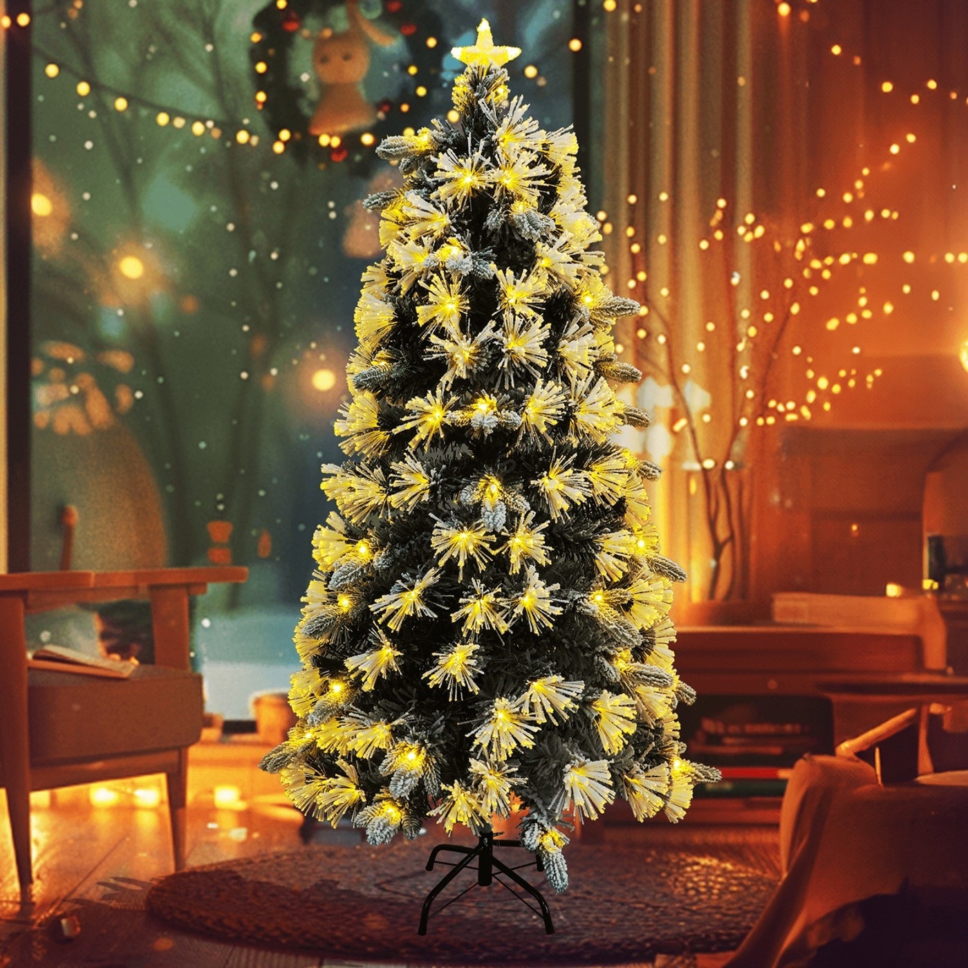 Aigostar - Árbol de Navidad LED para exterior 125xLED/8 funciones 1,2 m IP44 blanco cálido