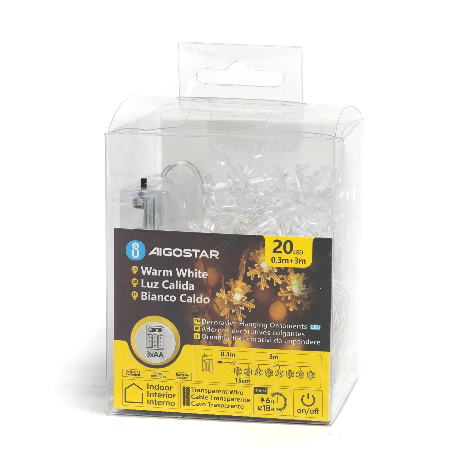 Aigostar - Cadena de luces de Navidad LED 20xLED/3xAA 3,3m copos de nieve
