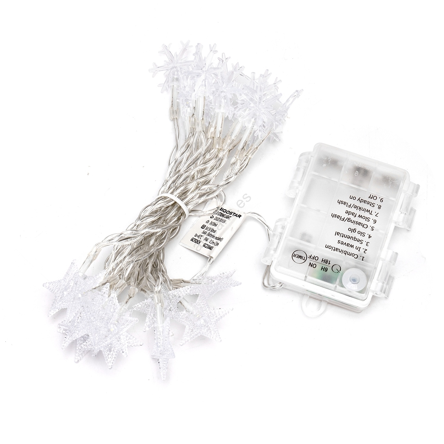 Aigostar - Guirnalda de luces LED para exterior, 25 LEDs, 8 funciones, 3xAA, 2,5 m, IP44, blanco frío