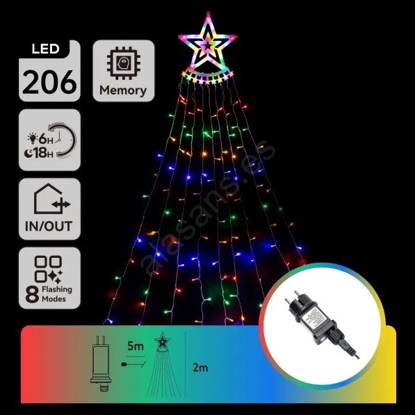 Aigostar - Iluminación navideña LED para exterior, 206 LEDs, 2 m, IP44, multicolor