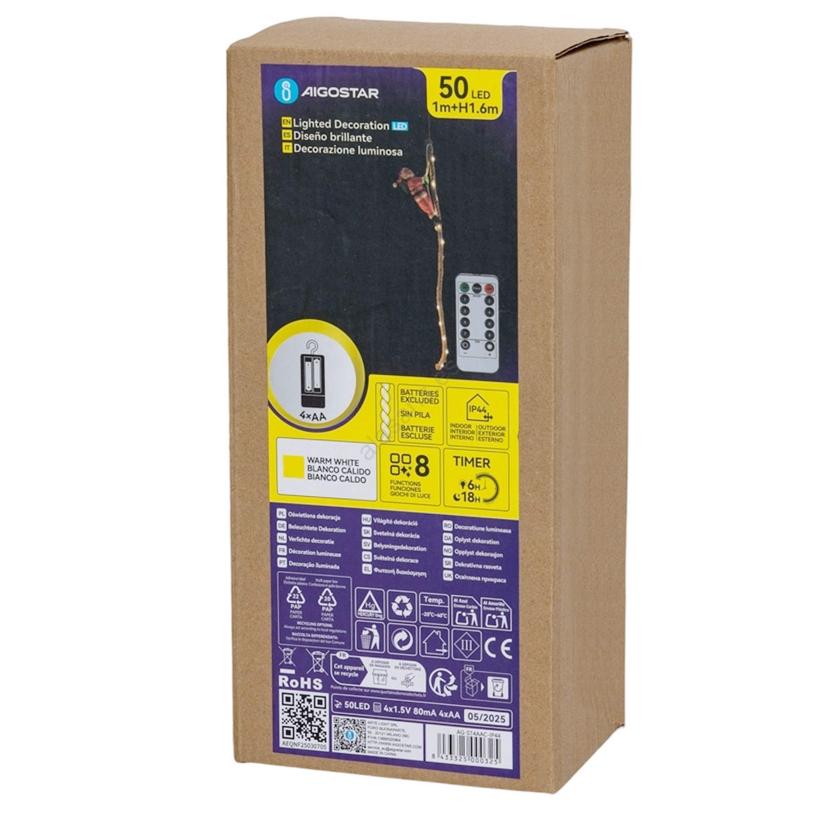 Aigostar - Decoración navideña LED para exterior LED/4xAA IP44 Papá Noel con paracaídas