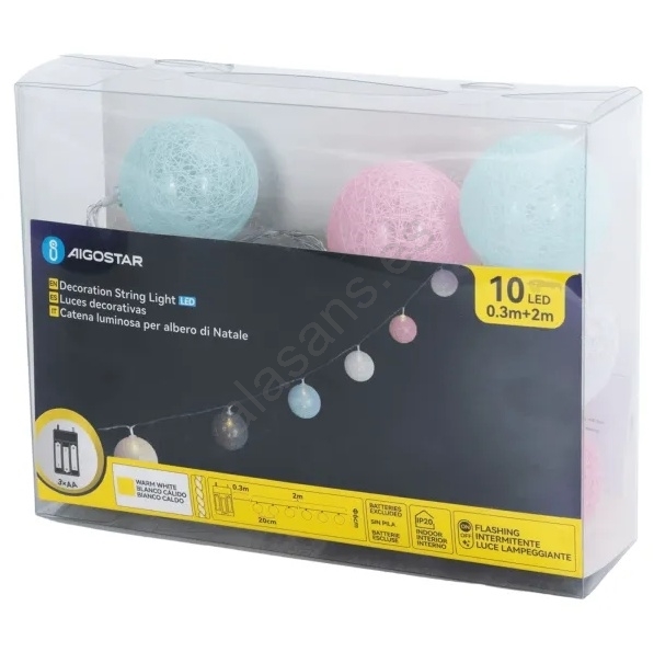 Aigostar - Guirnalda LED 10xLED/3xAA 2m blanco cálido