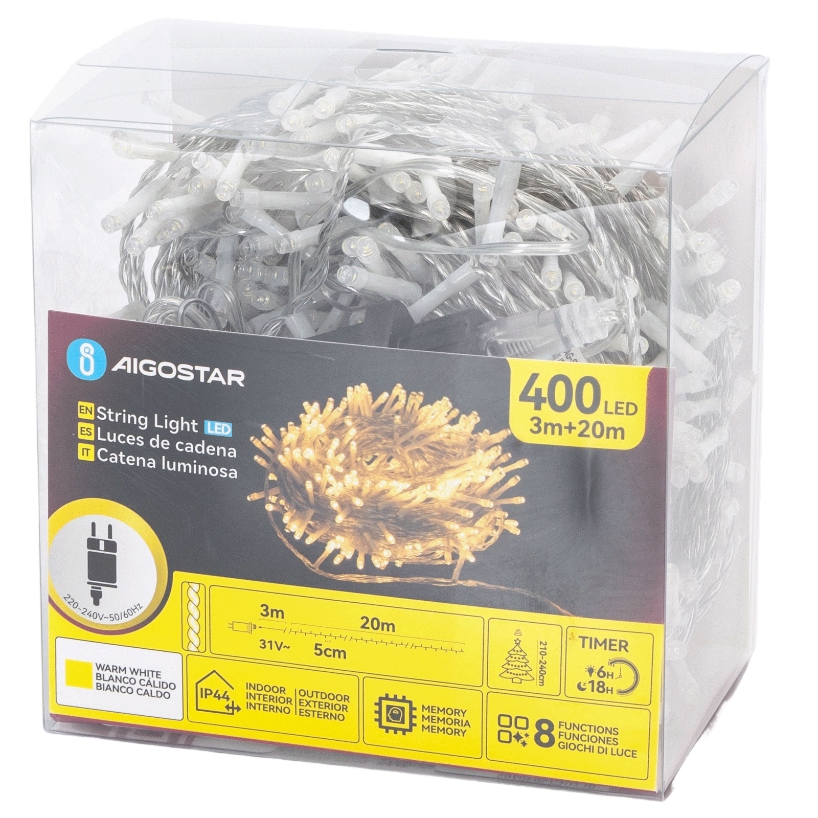 • Aigostar - Guirnalda LED para exteriores 400xLED/8 funciones 20m IP44 blanco cálido