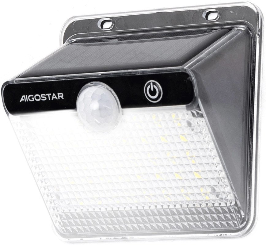 Aigostar - Luminaria solar LED con sensor, LED 3,7 V, 6500 K, 1200 mAh, IP65, negra