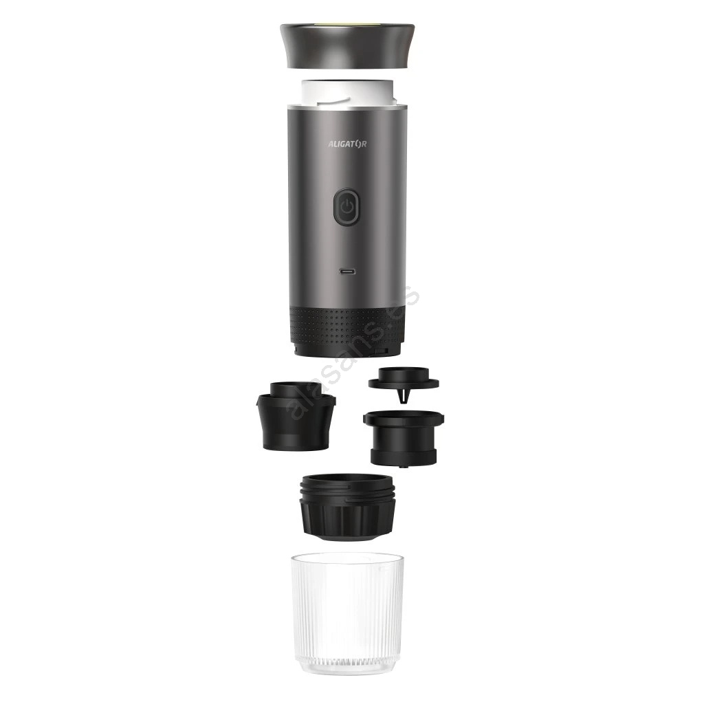 Aligator ACM002 - Cafetera portátil recargable PortaCaffé 3 en 1 72W/7500 mAh gris