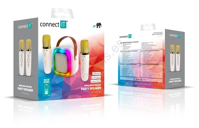 CONNECT IT CSP-1010-BG - Altavoz LED RGB con 2 micrófonos inalámbricos 5W/1200 mAh + 2x 400 mAh crema/dorado