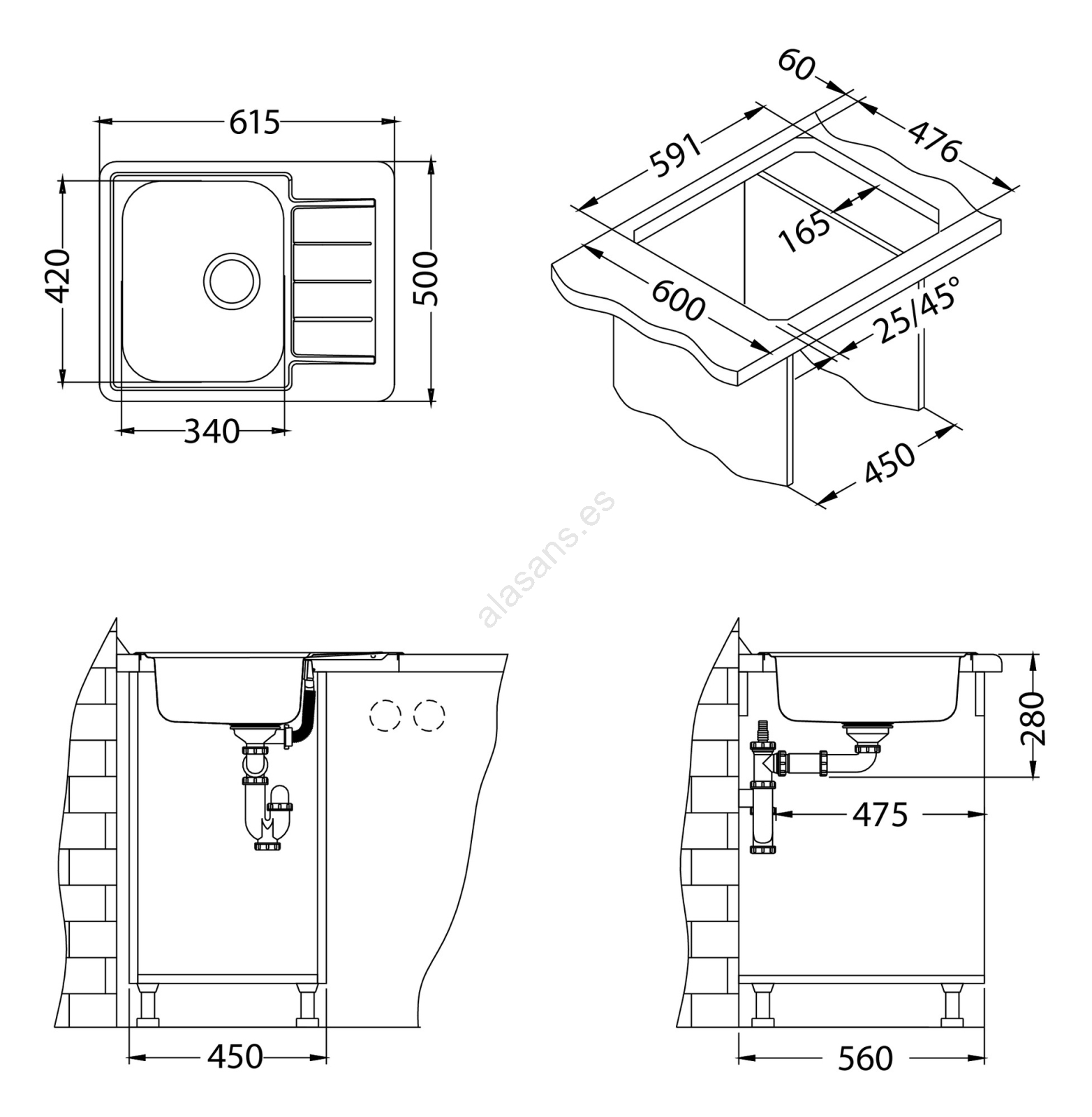 • Reversible: la cuba puede colocarse a la izquierda o a la derecha.