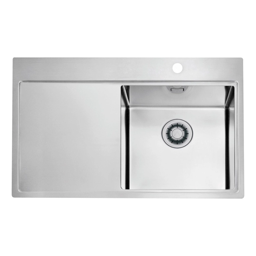 ALVEUS 1149516 - Fregadero de cocina PURE 79x52,5 cm satinado, con seno a la derecha + sifón con cierre rápido