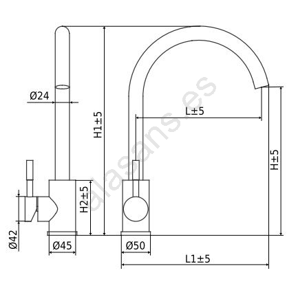 • Grifo de cocina monomando de alta presión con brazo giratorio.