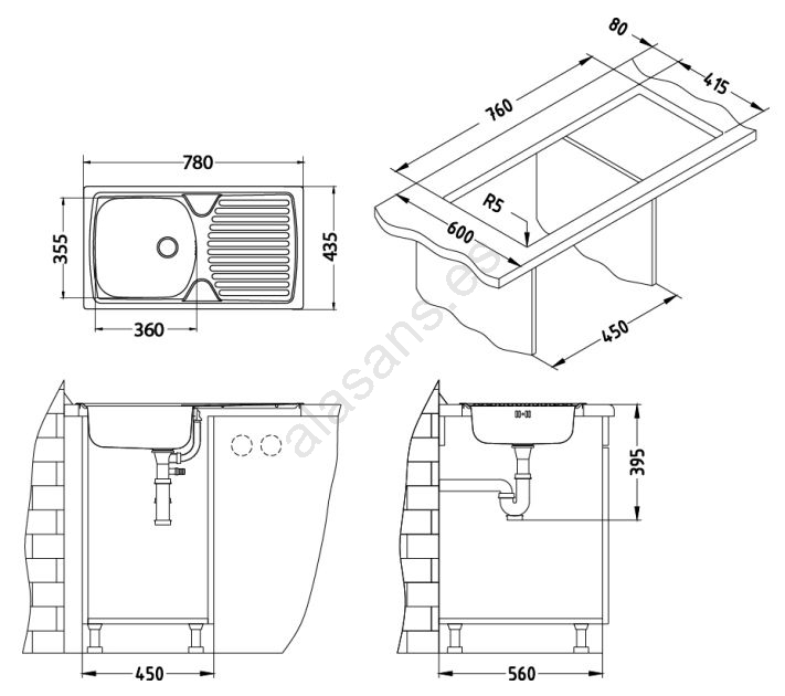 • El fregadero se entrega sin perforaciones; se debe realizar el orificio para el grifo.