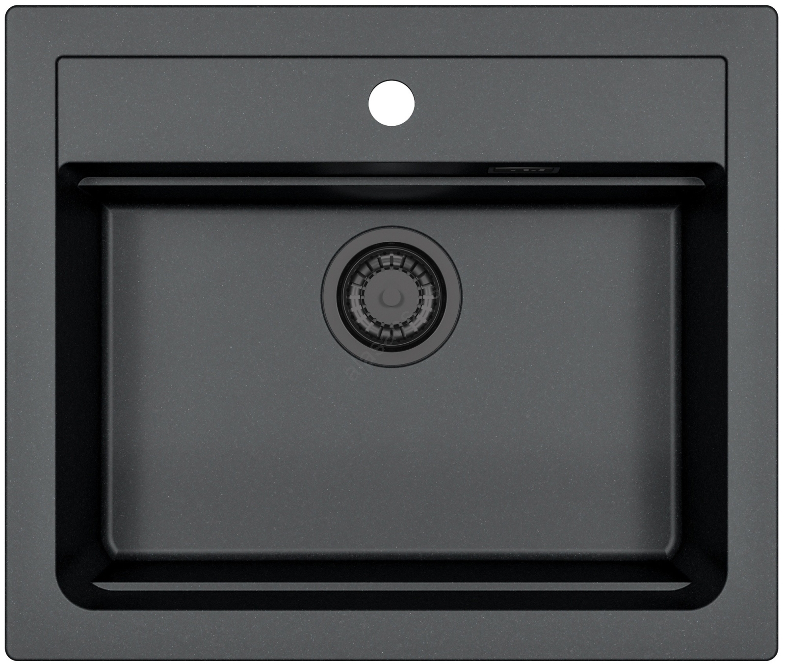 • ALVEUS SETA23236 - Fregadero de cocina ROCK 59,5x47,5 cm + grifo para fregadero con caño flexible MINTAS 34 cm granito/mate negro