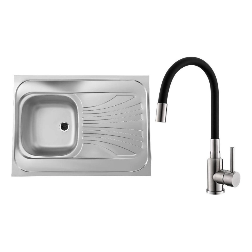 ALVEUS SETA24019 - Fregadero de cocina CLASSIC 80x60 cm + grifo de cocina con caño flexible MINTAS 34 cm acero cepillado/negro