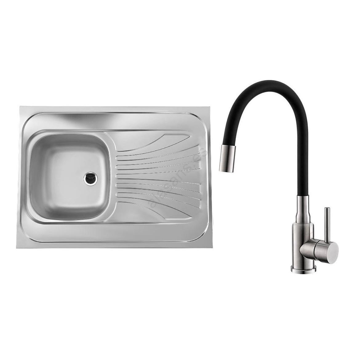ALVEUS SETA24019 - Fregadero de cocina CLASSIC 80x60 cm + grifo para fregadero con caño flexible MINTAS 34 cm acero inoxidable/negro