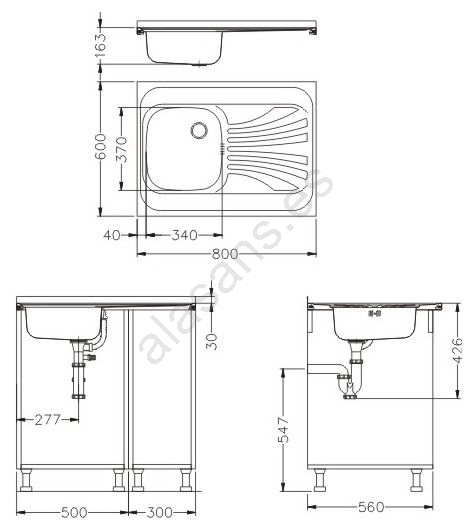 • Contenido del paquete: fregadero de acero inoxidable, desagüe 1 1/2, sifón con derivación para lavavajillas, tapón, grifo de fregadero, mangueras de conexión, kit de montaje.
