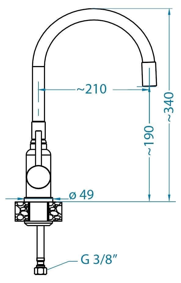 • Grifo monomando para cocina, apto para alta presión, con brazo giratorio.