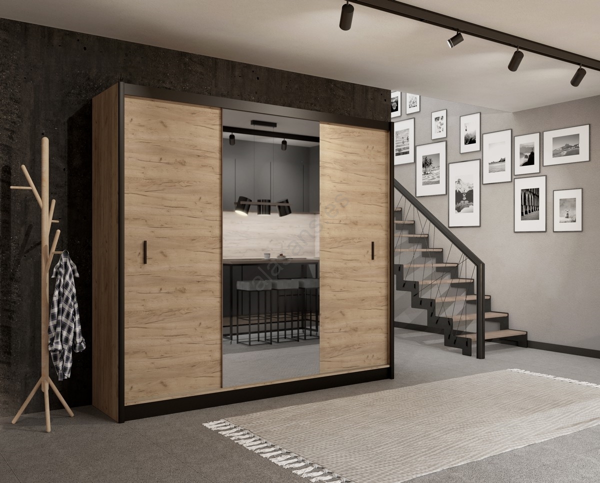• Armario con espejo SABRINA 250x215 cm roble craft