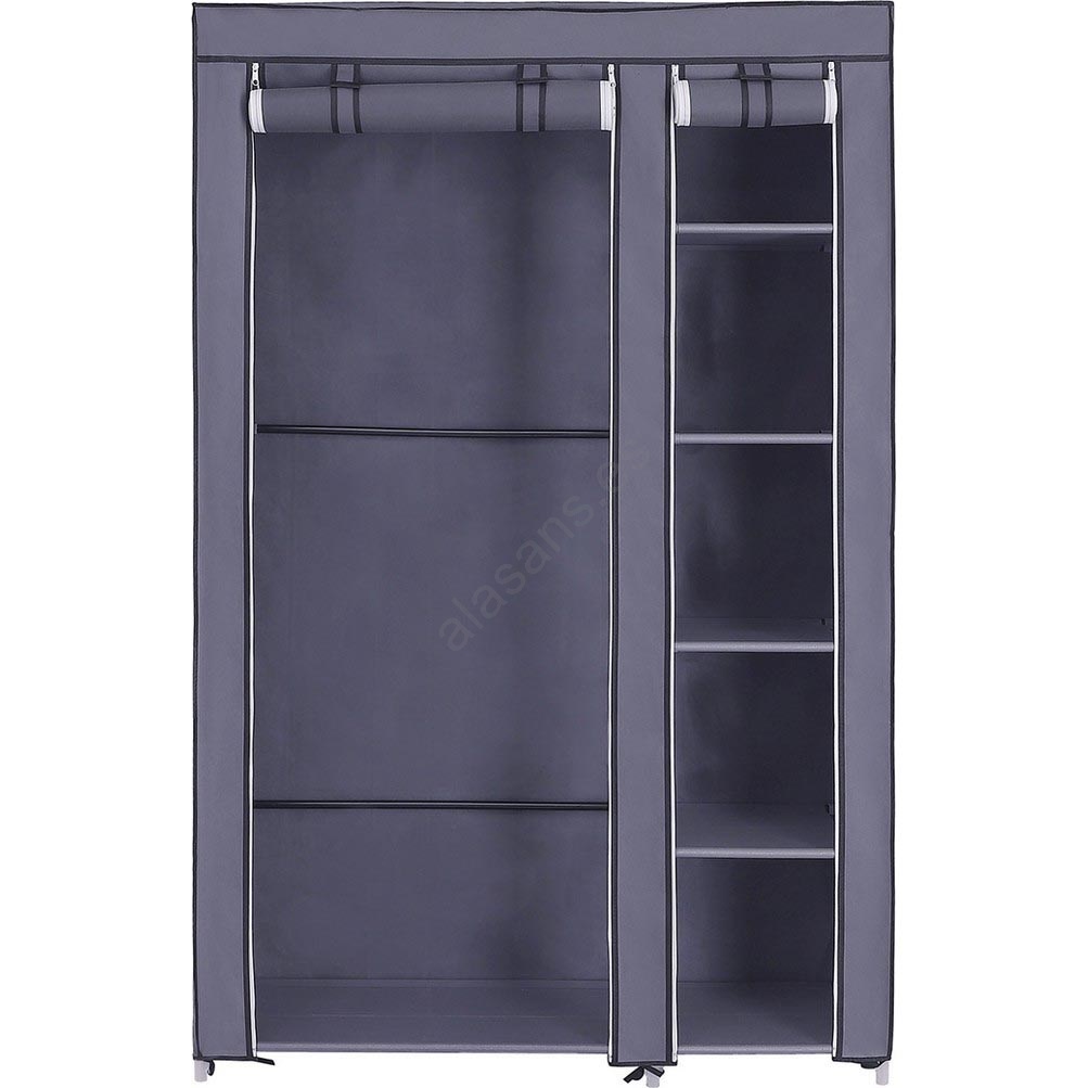 Armario de tela MATIS 110x175 cm con estantes y barra para colgar, gris