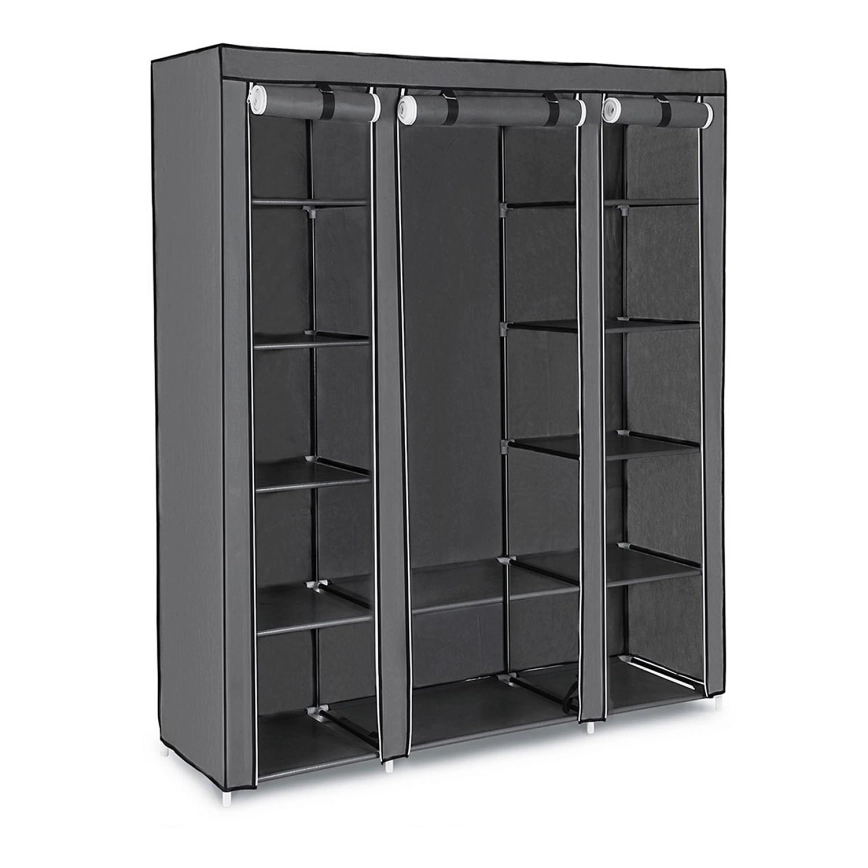 Armario de tela MATIS 150x175 cm con estantes y barra para colgar, gris