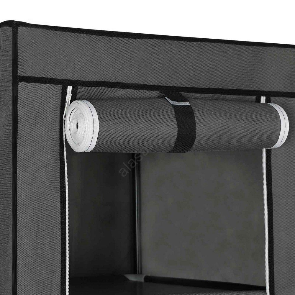 • Armario de tela MATIS 150x175 cm con estantes y barra para colgar, gris