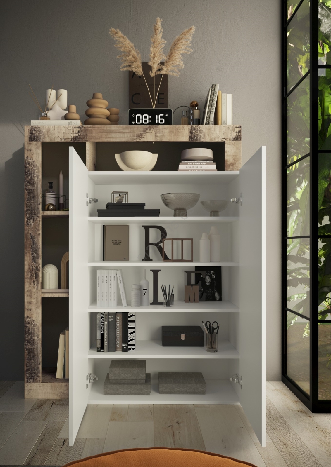 • Cuenta con 4 estantes abiertos y 5 compartimentos interiores para guardar bolsas, calzado y artículos de temporada.