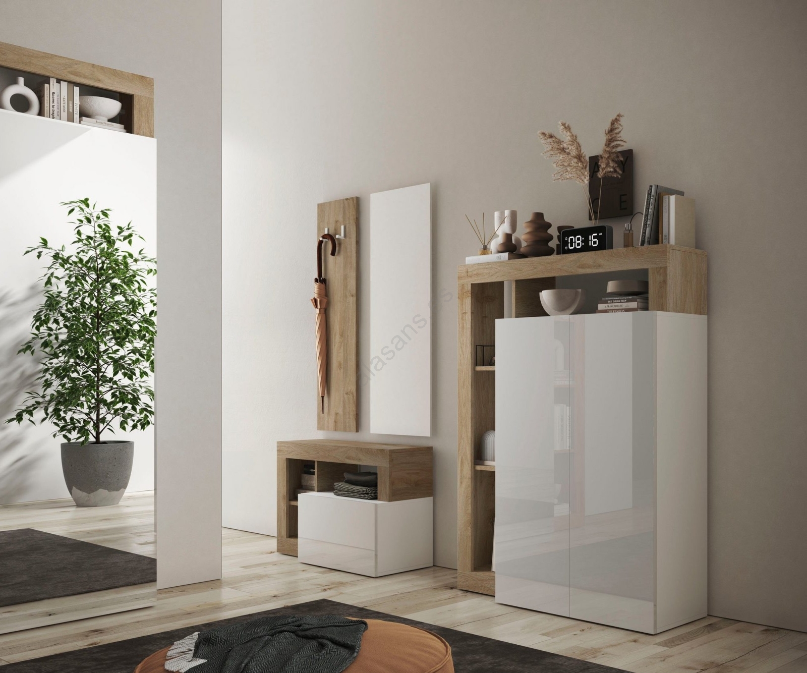 • Cuenta con 4 estantes abiertos y 5 compartimentos interiores para guardar bolsos, zapatos y artículos de temporada.