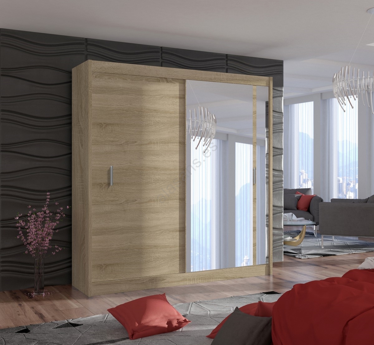 • Armario con espejo SABRINA 203x215 cm roble sonoma
