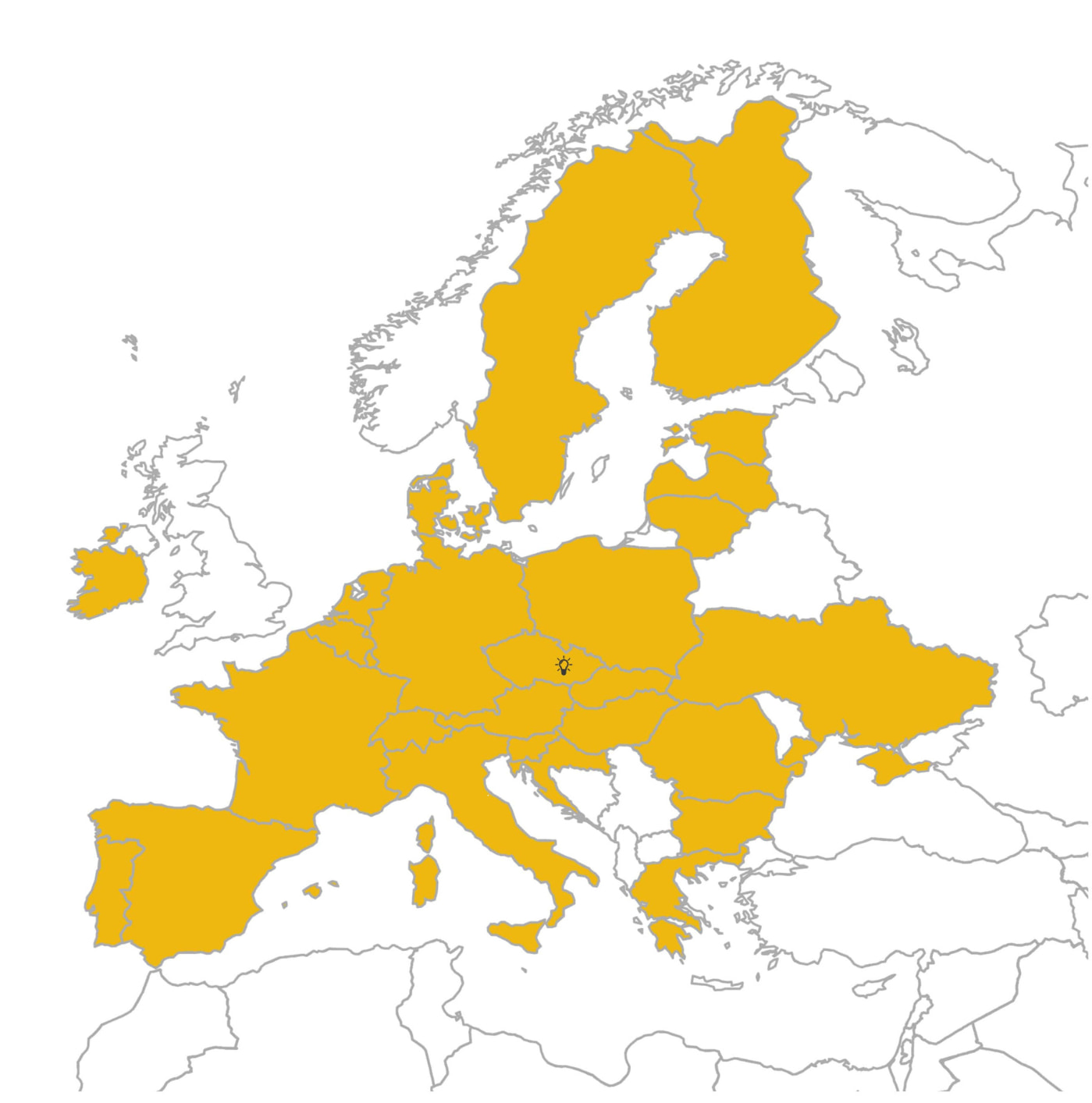 Le prometimos que no le llevaríamos sólo de viaje en el tiempo, sino también en el espacio. Ahora mismo, los productos de Alasans brillan en 26 países europeos. Para que te hagas una idea, es casi el mismo número que el de los actuales miembros de la Unión Europea (27). ¿Y dónde puede encontrarnos? No copiamos al 100% la Unión Europea, pero la lista es larga. Por ejemplo, en 2015, hace exactamente diez años, estábamos "solo" en la República Checa, Eslovaquia, Hungría y Polonia. Puedes ver qué otros países se han unido con el tiempo en la imagen de abajo: República Checa, Eslovaquia, Hungría, Polonia, Alemania, Rumanía, Austria, Italia, Reino Unido, Francia, España, Eslovenia, Croacia, Bélgica, Bulgaria, Holanda, Letonia, Lituania, Estonia, Dinamarca, Portugal, Ucrania, Finlandia, Suecia, Suiza, Grecia.