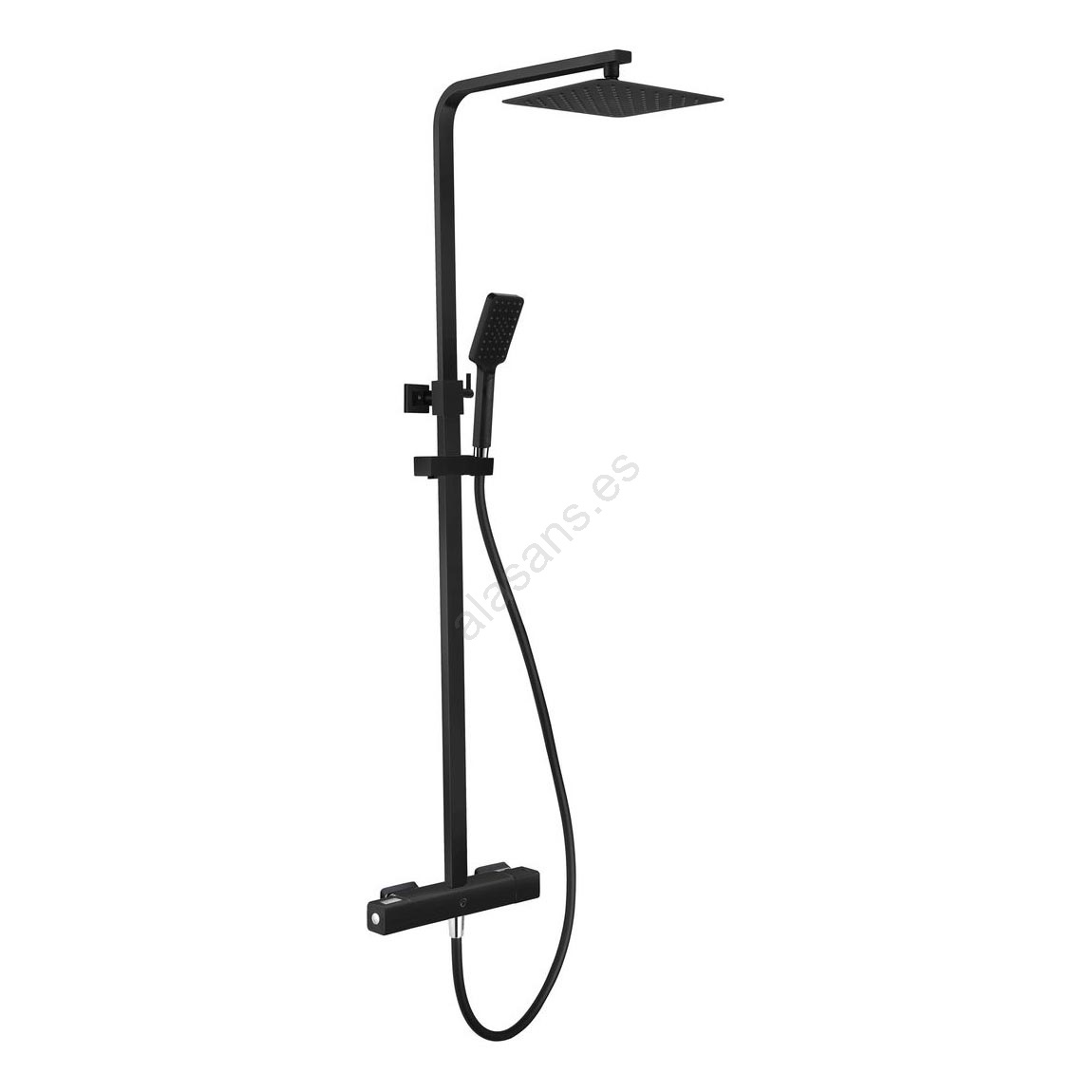 • Barra de ducha y rociador superior de acero inoxidable con acabado PVD.