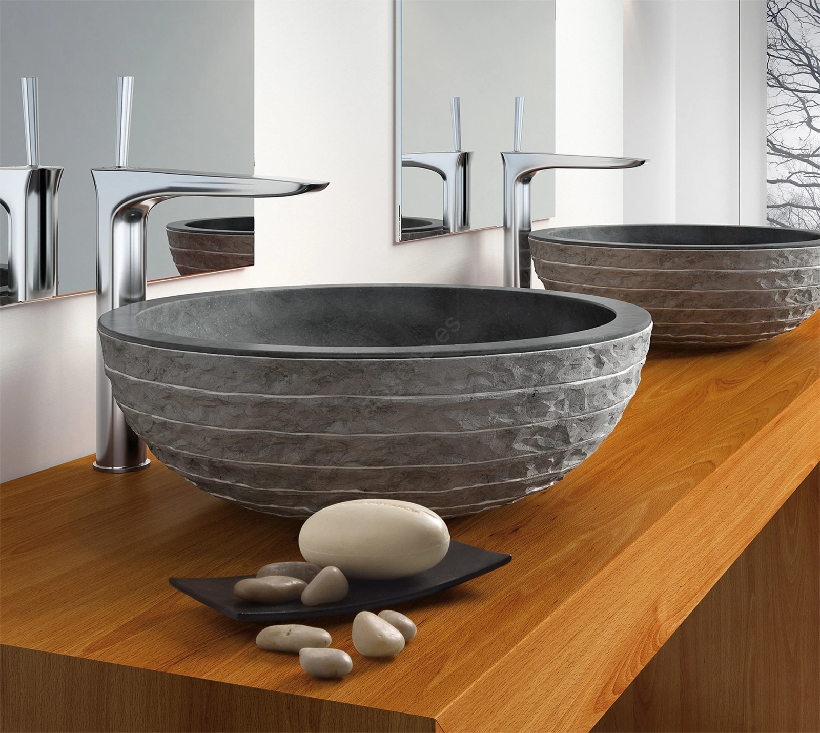 • El lavabo está fabricado en piedra natural.