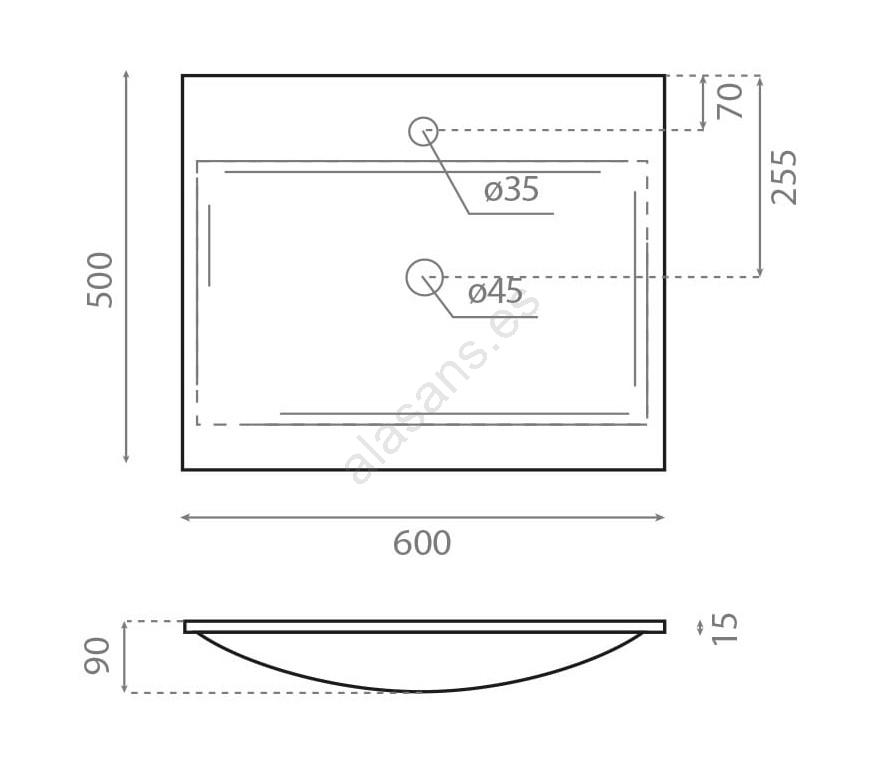 • El embalaje incluye el lavabo sin sifón ni grifería.