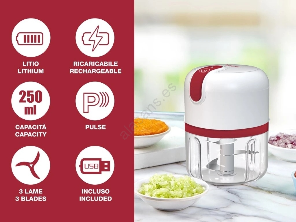 Beper - Picadora recargable 30 W/5 V, 1500 mAh, 250 ml