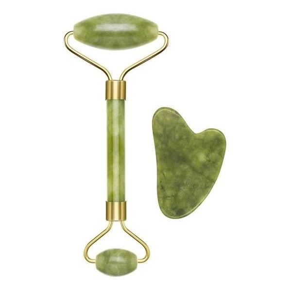 Beper - Rodillo de masaje y piedra Gua Sha de jade
