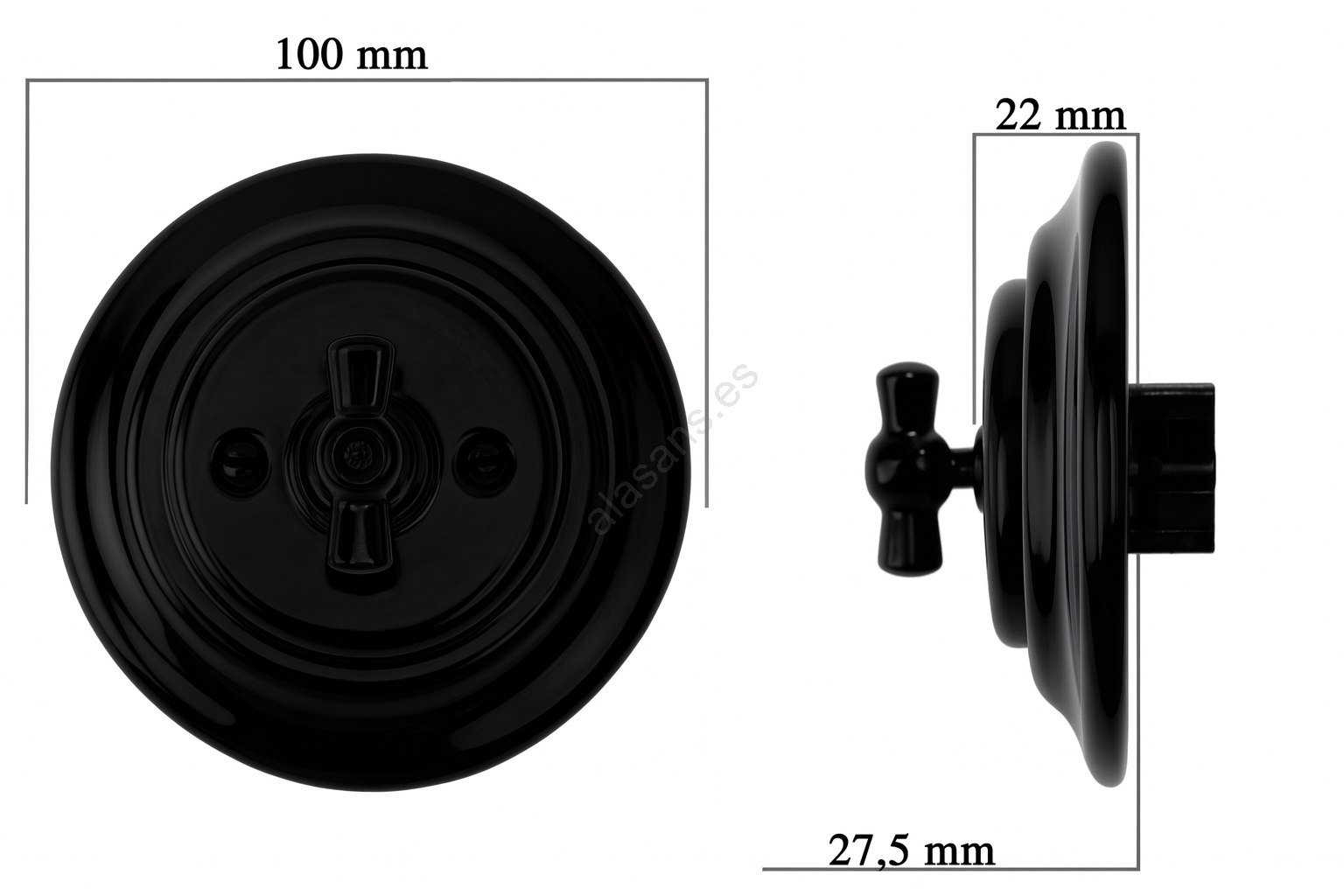Bohemia-Design - Interruptor rotatorio retro de porcelana con marco n.º 7, negro