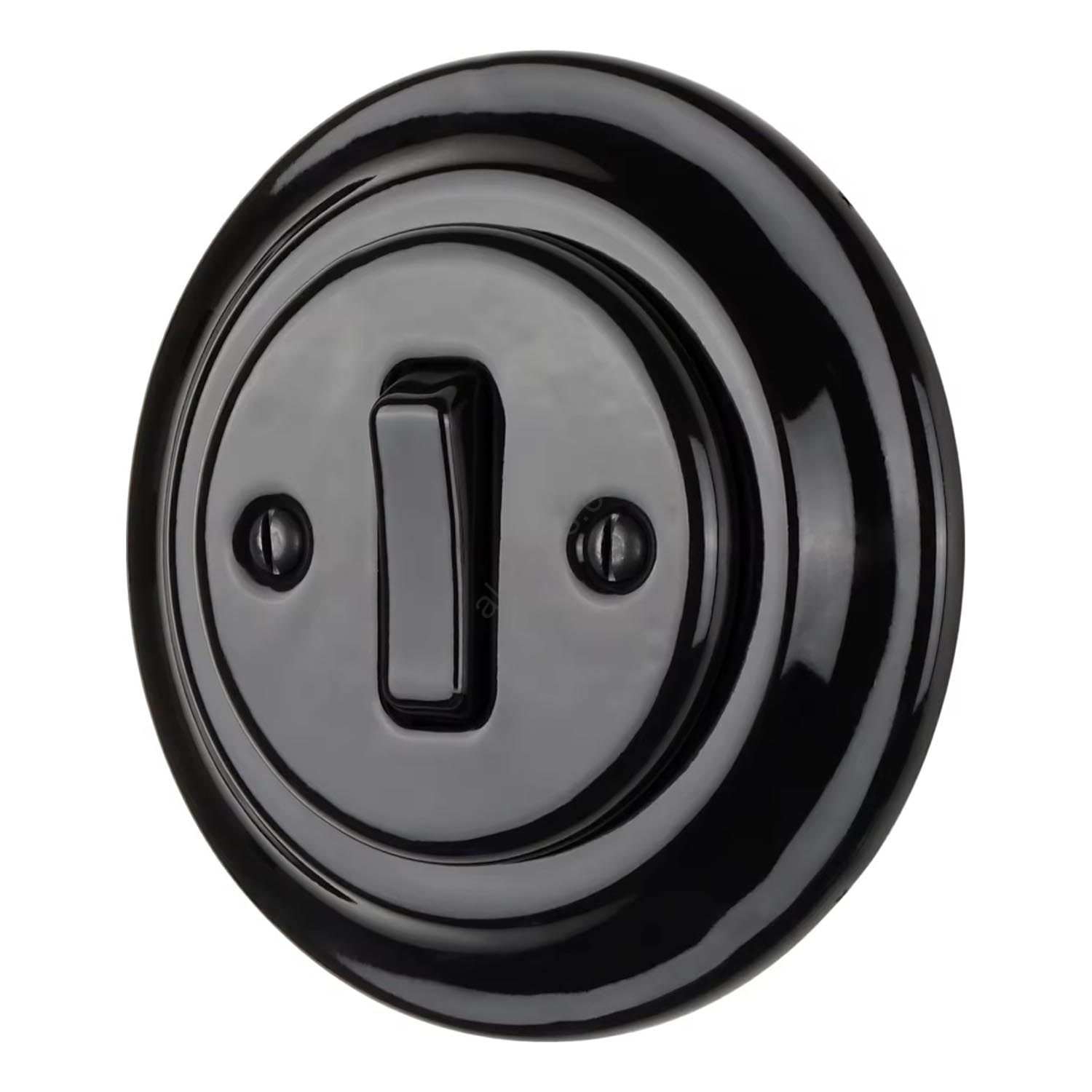 Bohemia-Design - Interruptor retro de porcelana sencillo con marco n.º 1, negro