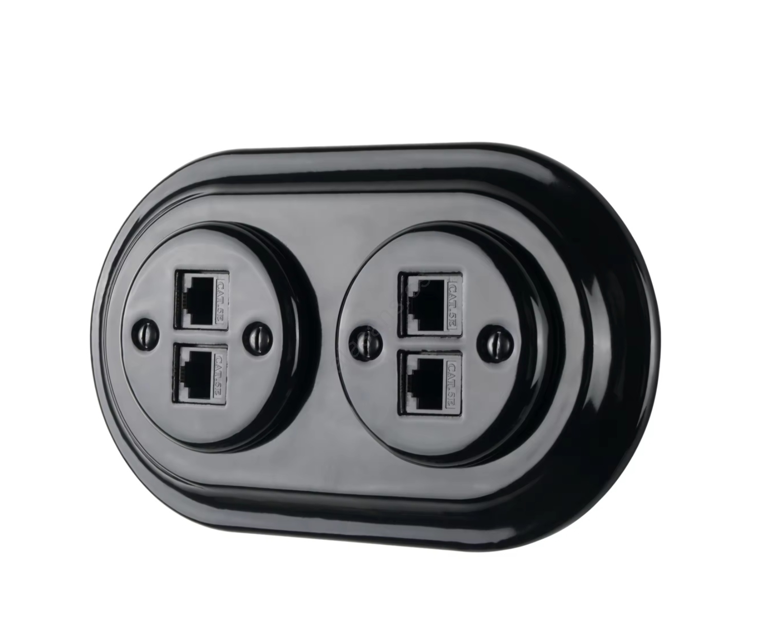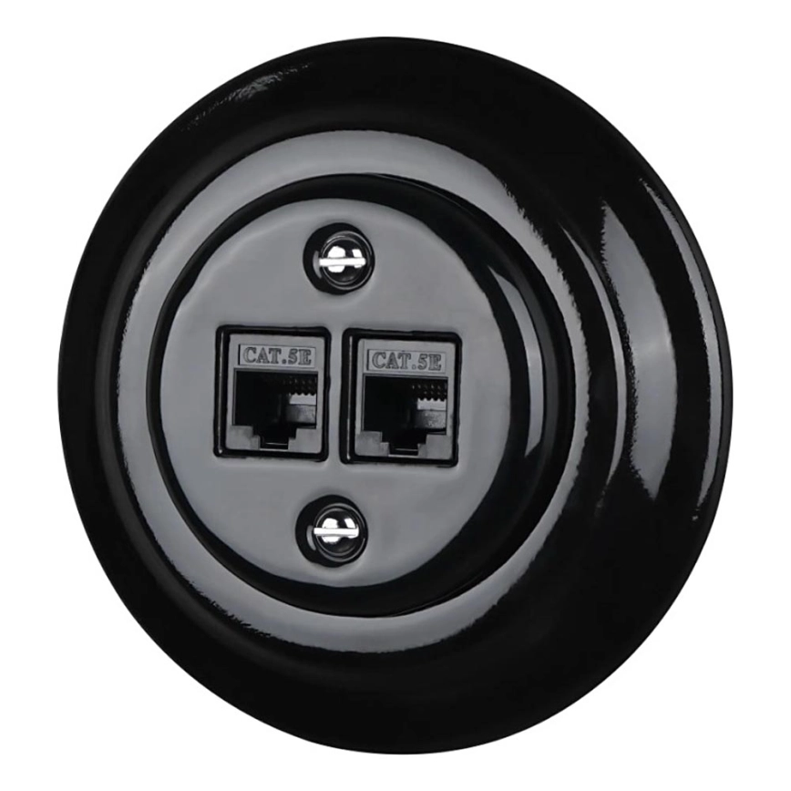 Bohemia-Design - Toma Ethernet retro de porcelana con marco, 2x CAT.5E, negra