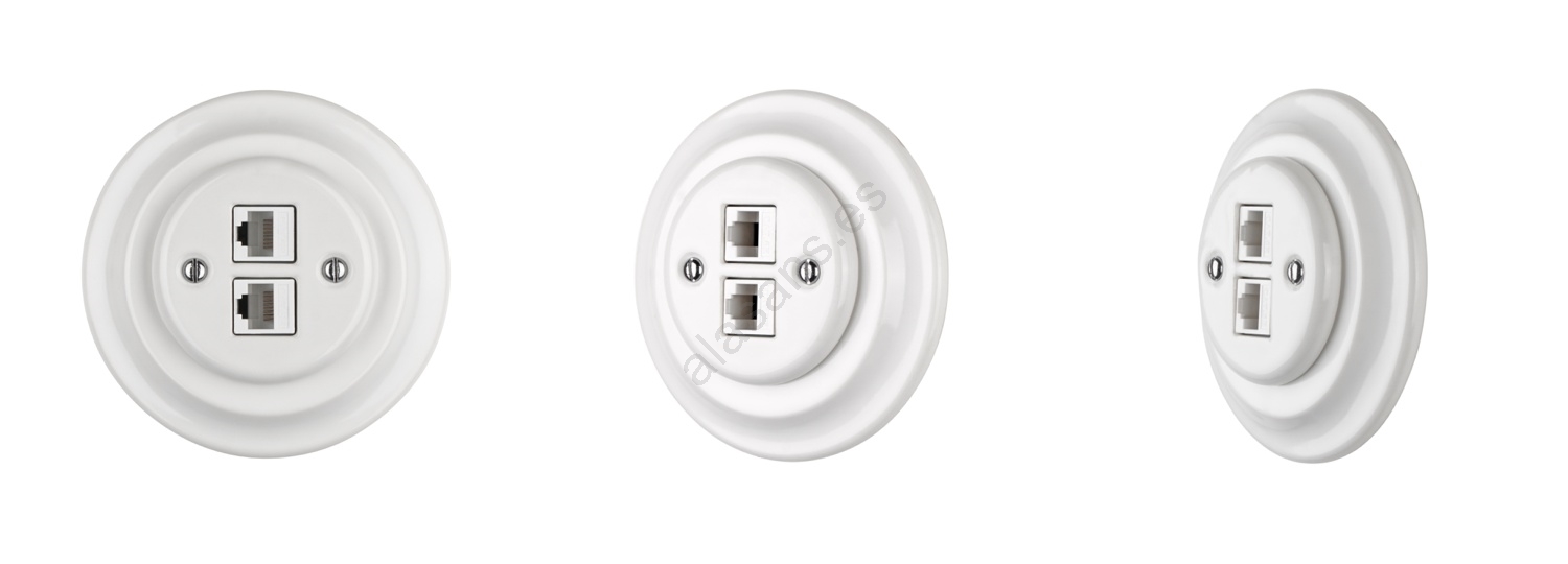 • Base Ethernet de porcelana, 2x CAT5e, 2x RJ45.