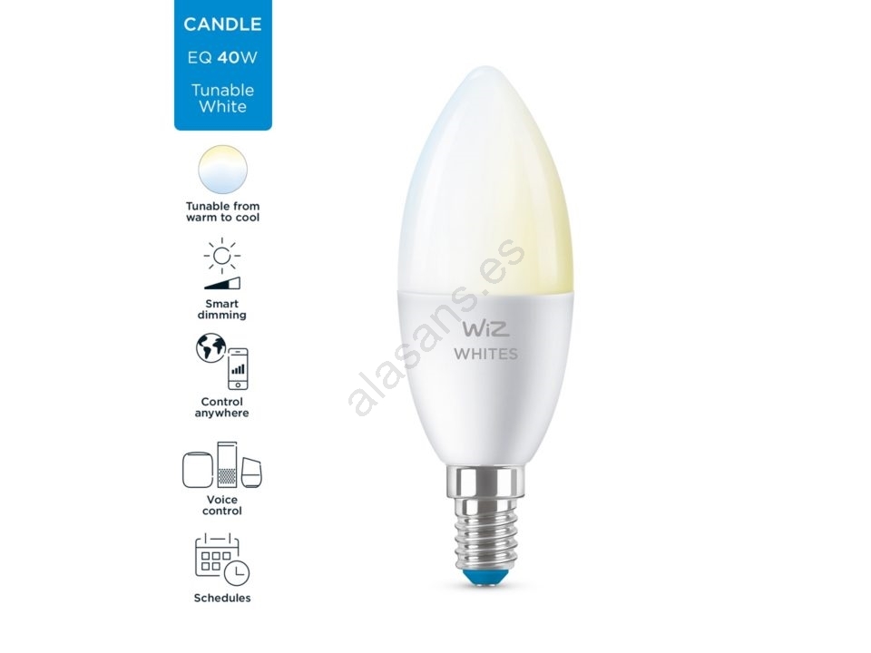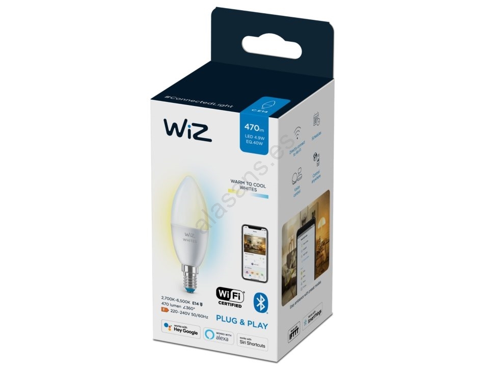 Bombilla LED regulable C37 E14/4,9W/230V 2700-6500K CRI 90 Wi-Fi - WiZ