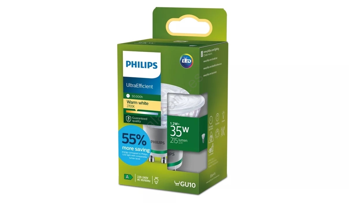 Bombilla LED ULTRAEFFICIENT Philips PAR16 GU10/1,2W/230V 2700K