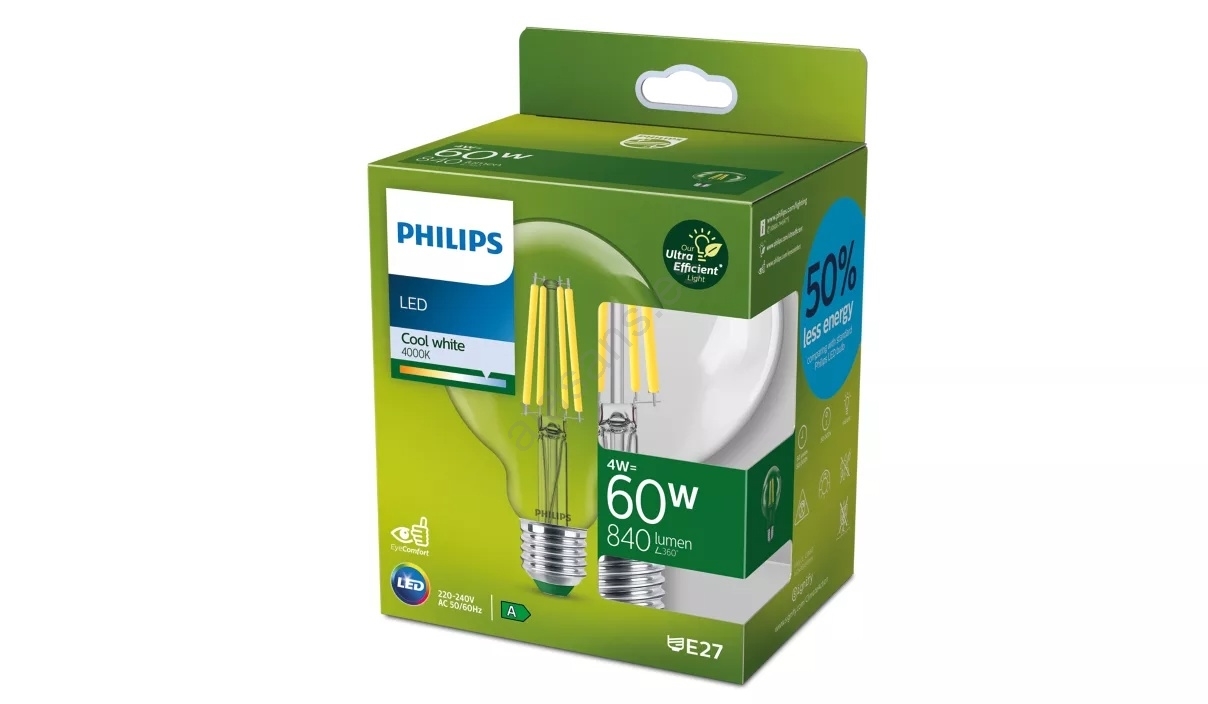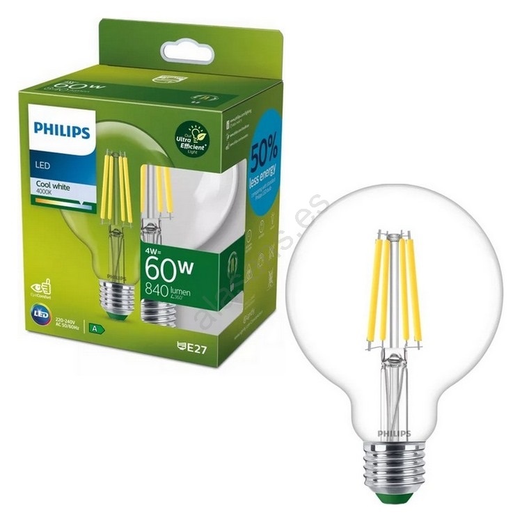 • Bombilla LED ULTRAEFFICIENT VINTAGE Philips G95 E27, 4W, 230V, 4000K