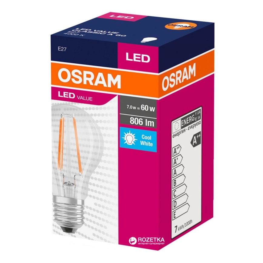 Bombilla LED VINTAGE E27/7W/230V 4000K - Osram El diseño de alta calidad garantizará una iluminación perfecta de su interior. La categoría E27 está dedicada a bombillas con la misma base. En nuestra tienda en línea, puede elegir entre bombillas con filamento tradicional o bombillas LED modernas, que son más eficientes en términos de energía y tienen una vida útil más larga.