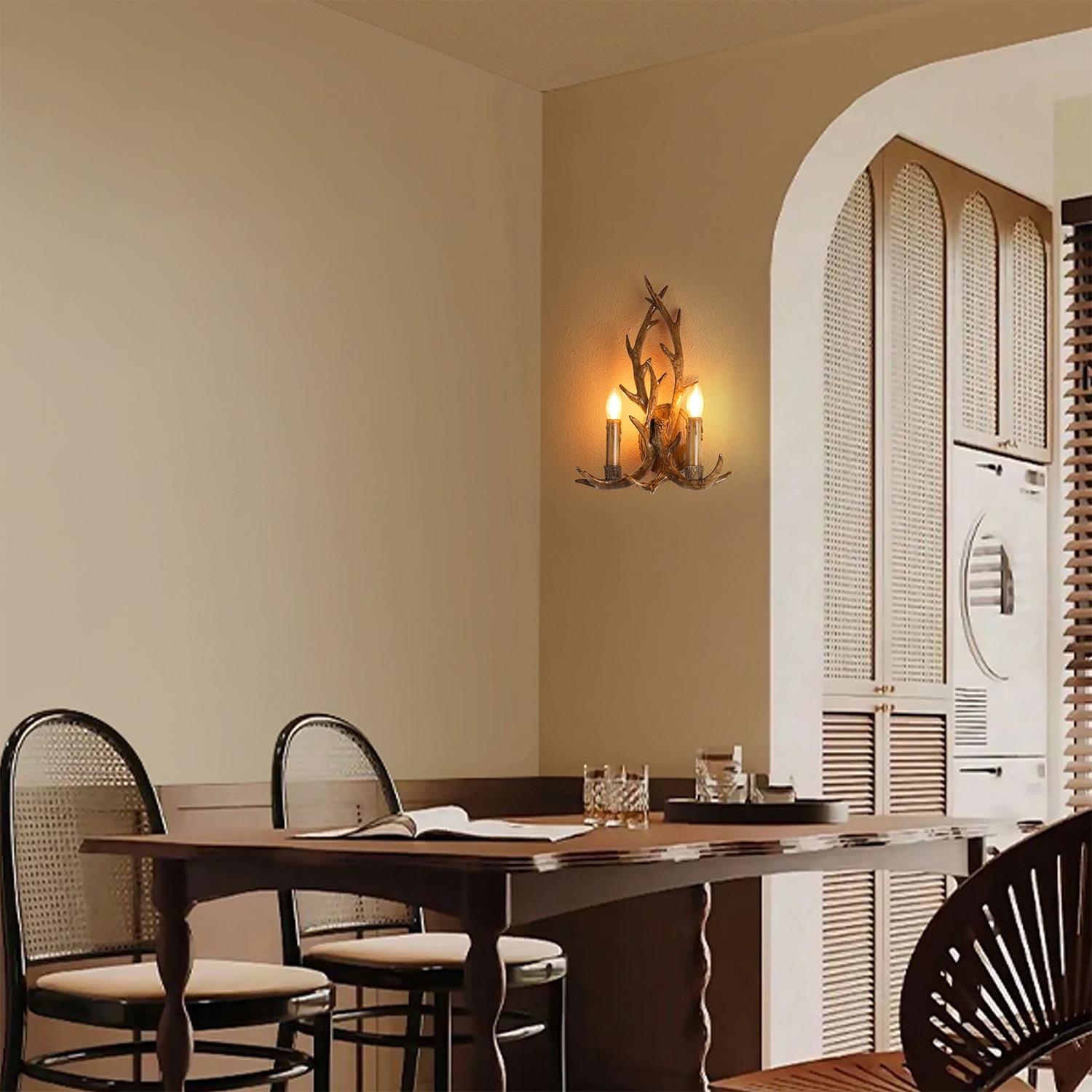 El diseño bonito y funcional caracteriza a Brilagi - Aplique de pared DEER 2xE14/10W/230V con astas.  Una bombilla con casquillo E14 es adecuada para la lámpara. Aquí, puedes comprar otras bombillas a precios ventajosos. Será una adición interesante para tu hogar.