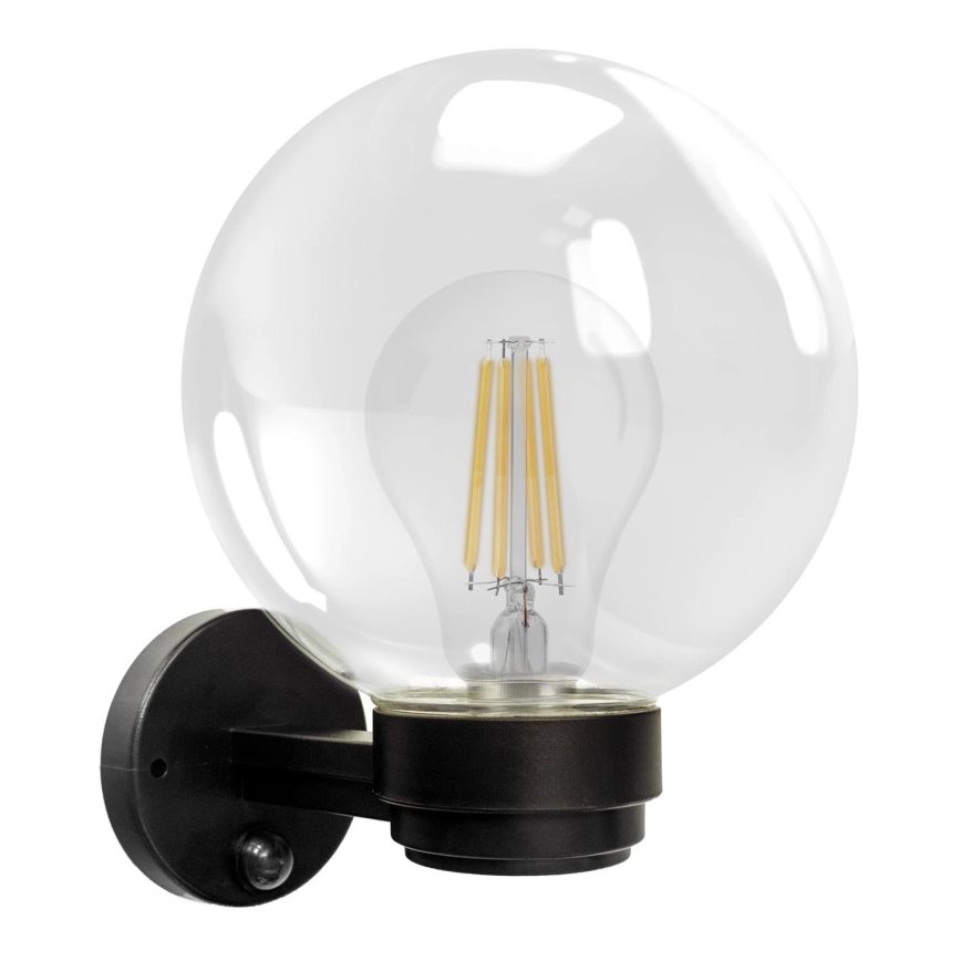 • Brilagi - Aplique de pared exterior con sensor de movimiento HARBOR 1xE27/40W/230V IP33 negro/transparente