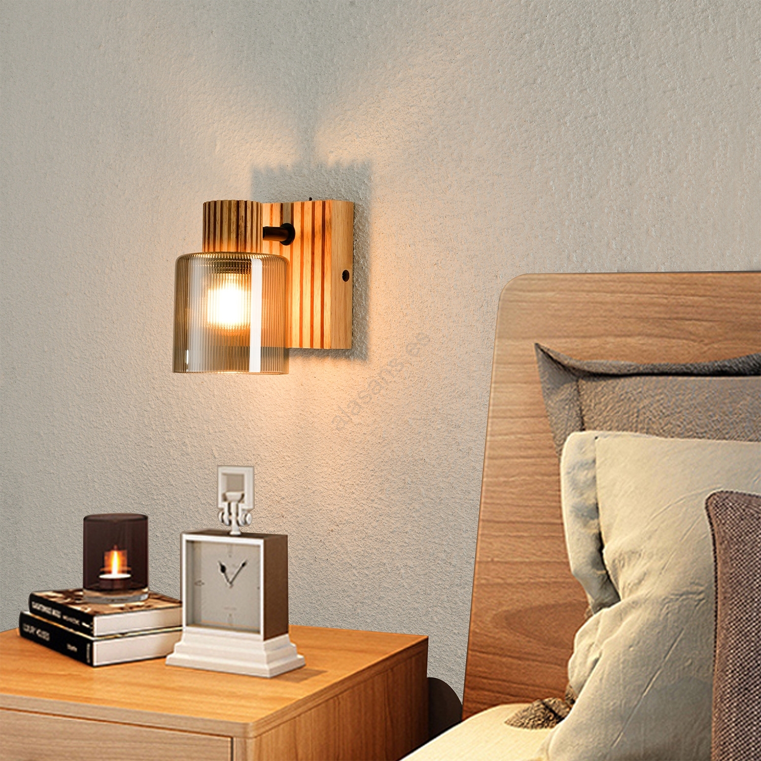 Brilagi - Aplique de pared orientable HYGGE 1xE14/15W/230V madera de caucho/vidrio ahumado