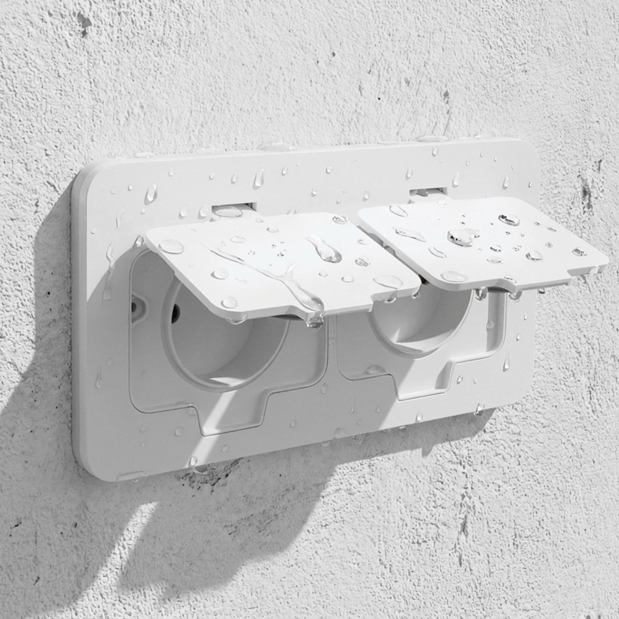Brilagi - Base empotrada de suelo para exterior, doble toma de corriente IP55, blanca, rectangular
