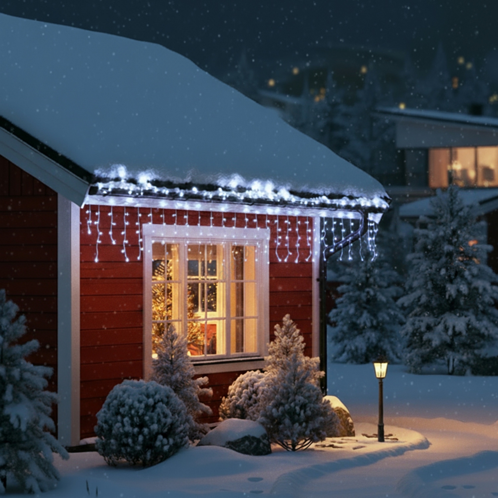 Brilagi - Guirnalda de Navidad LED para exterior 200xLED/8 funciones 13m IP44, blanco frío, efecto carámbano