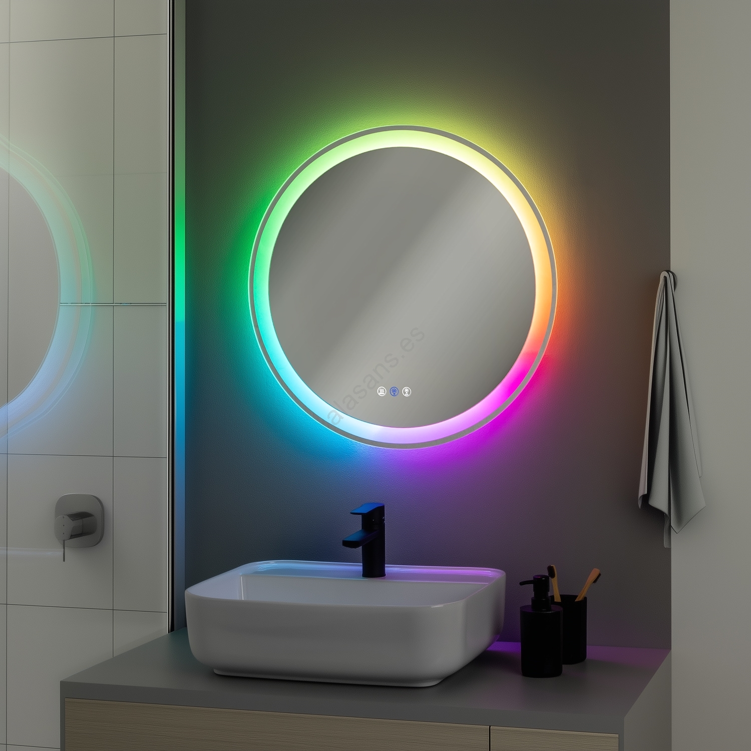 • Espejo de baño sin marco con función antivaho por calefacción y retroiluminación LED.